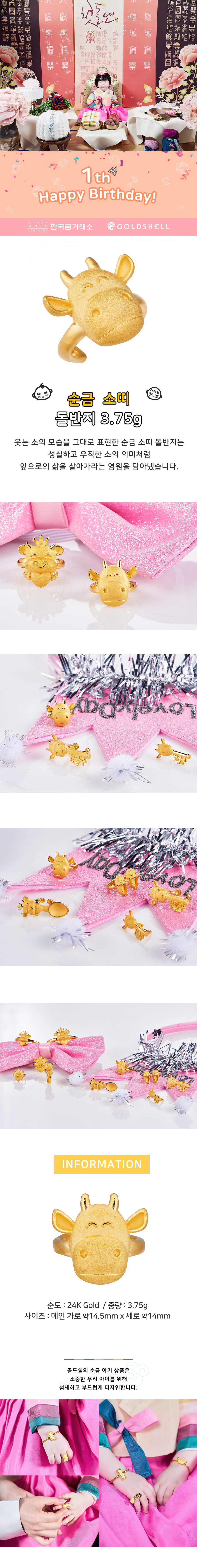 순금 소띠 돌반지 3.75g